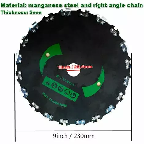 Application : Les lames de scie à chaîne conviennent à la plupart des applications de débroussaillage. Convient pour couper l’herbe épaisse, les arbustes et les jeunes arbres.