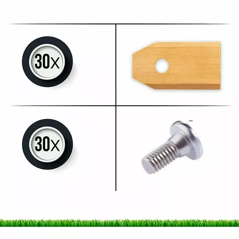 Quantité de livraison : 30 lames de tondeuse à gazon + 30 vis d’origine.
